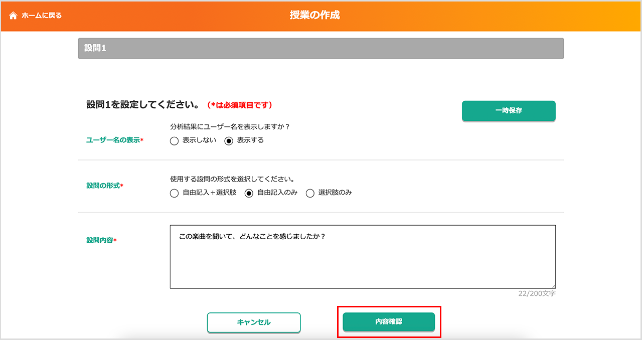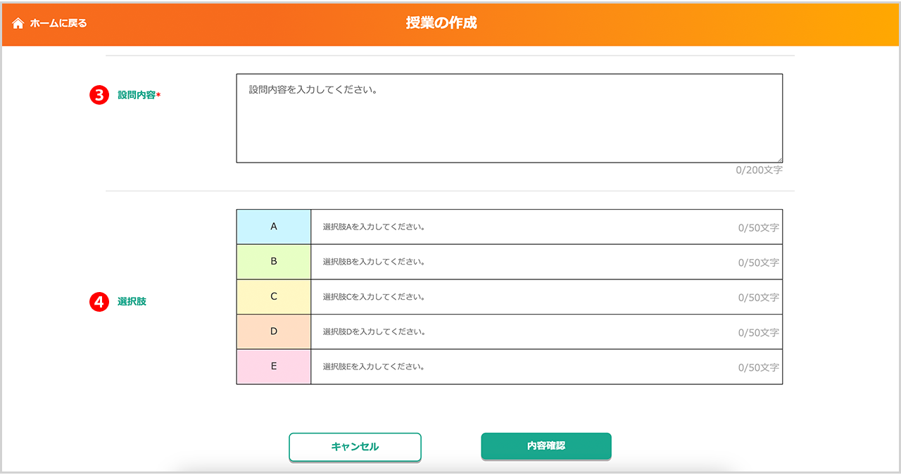 授業で使う設問の内容を入力します。(最大200文字)