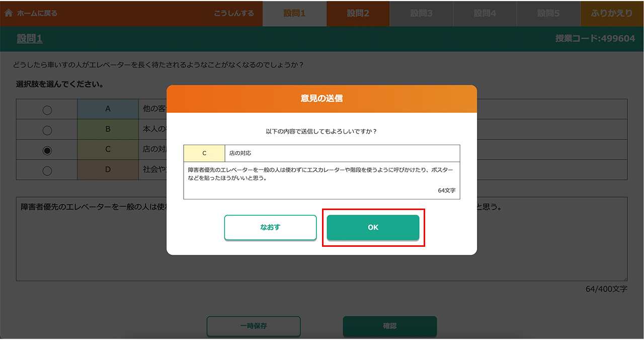 2.設問を受け取る(児童生徒)