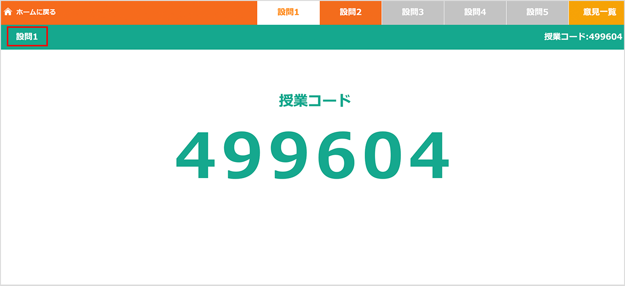 メインメニューの下の緑のバーに「設問1」が表示されます。