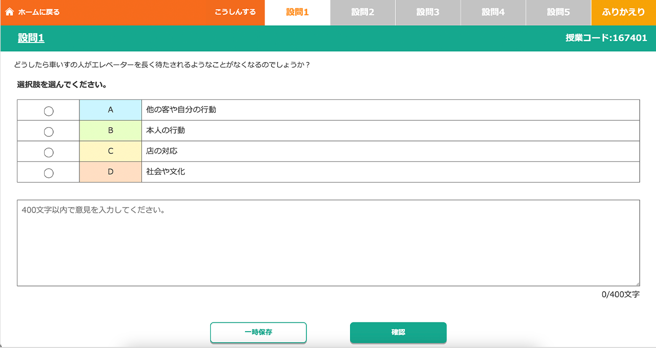 児童生徒が授業に参加したら、設問を提示しましょう。