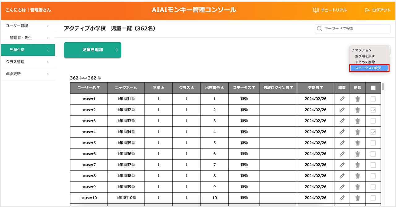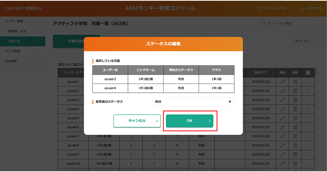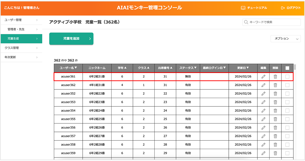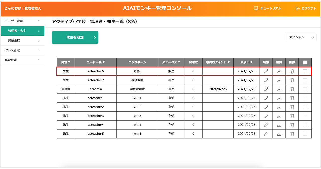 学校管理者は、管理コンソール画面でユーザーを停止することができます。