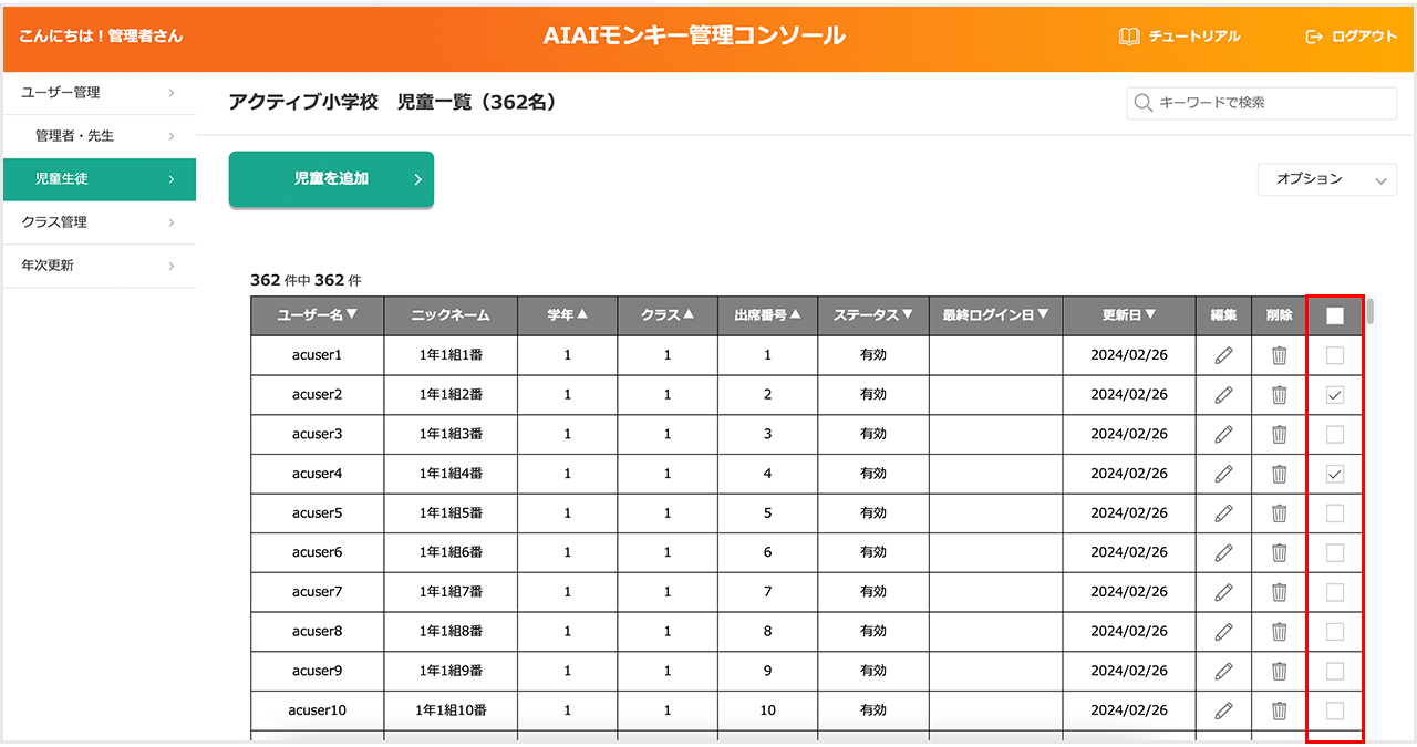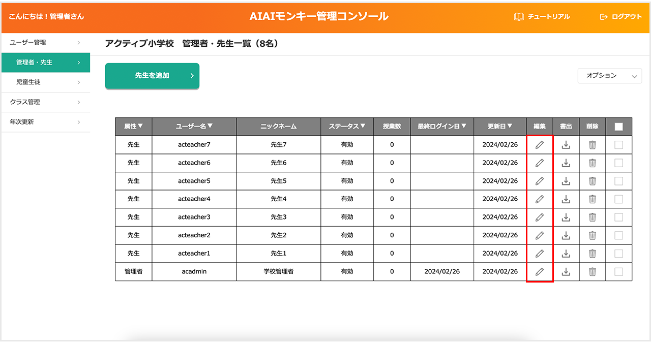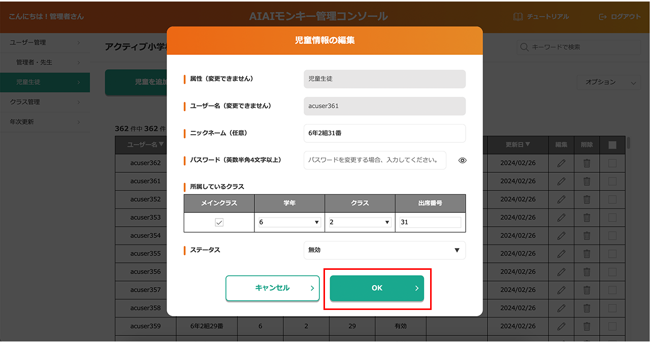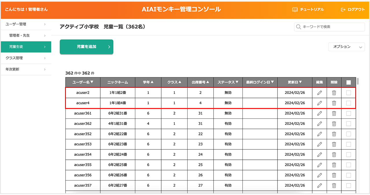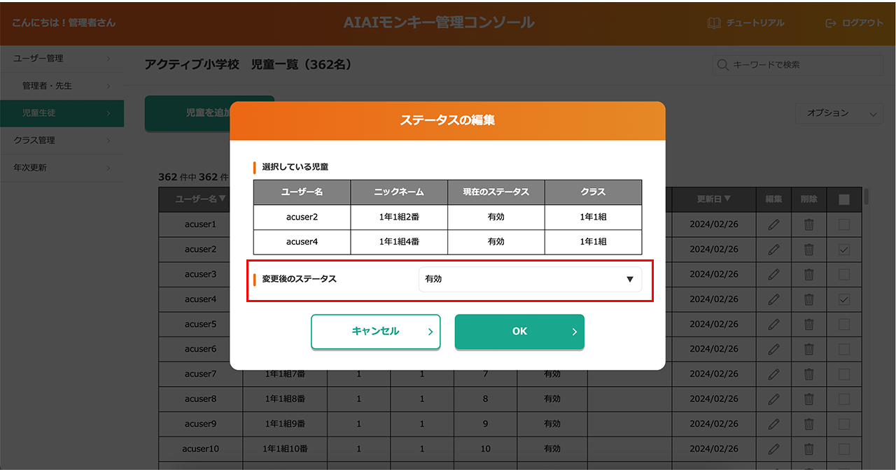 学校管理者は、管理コンソール画面でユーザーを停止することができます。