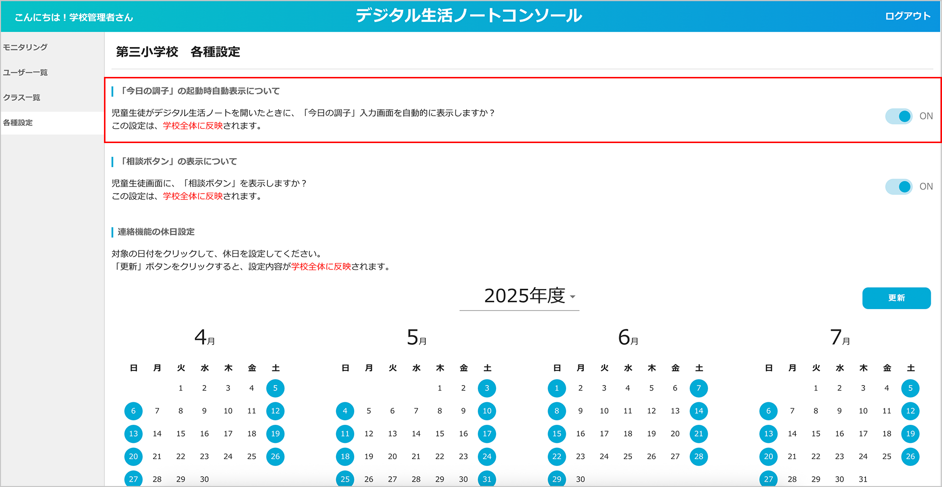 学校管理者は、この自動表示を ON/OFF で切り替えることができます。
