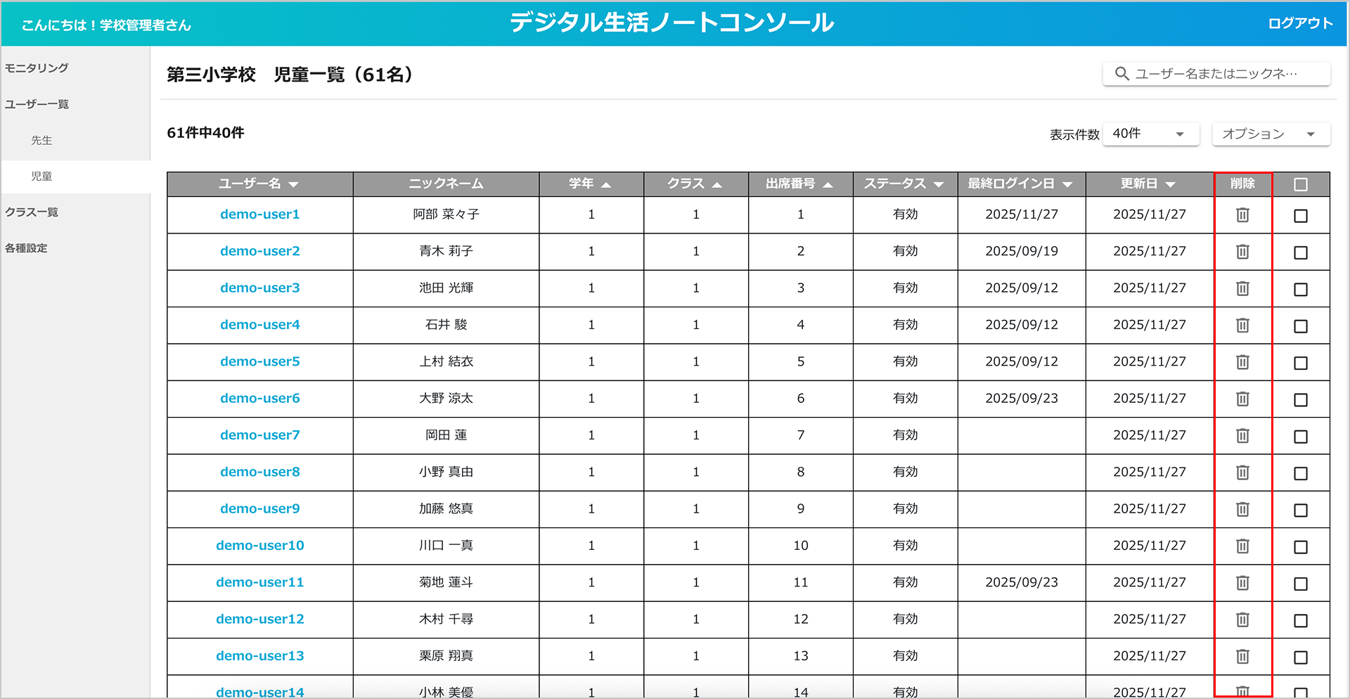 3.児童生徒情報を削除する