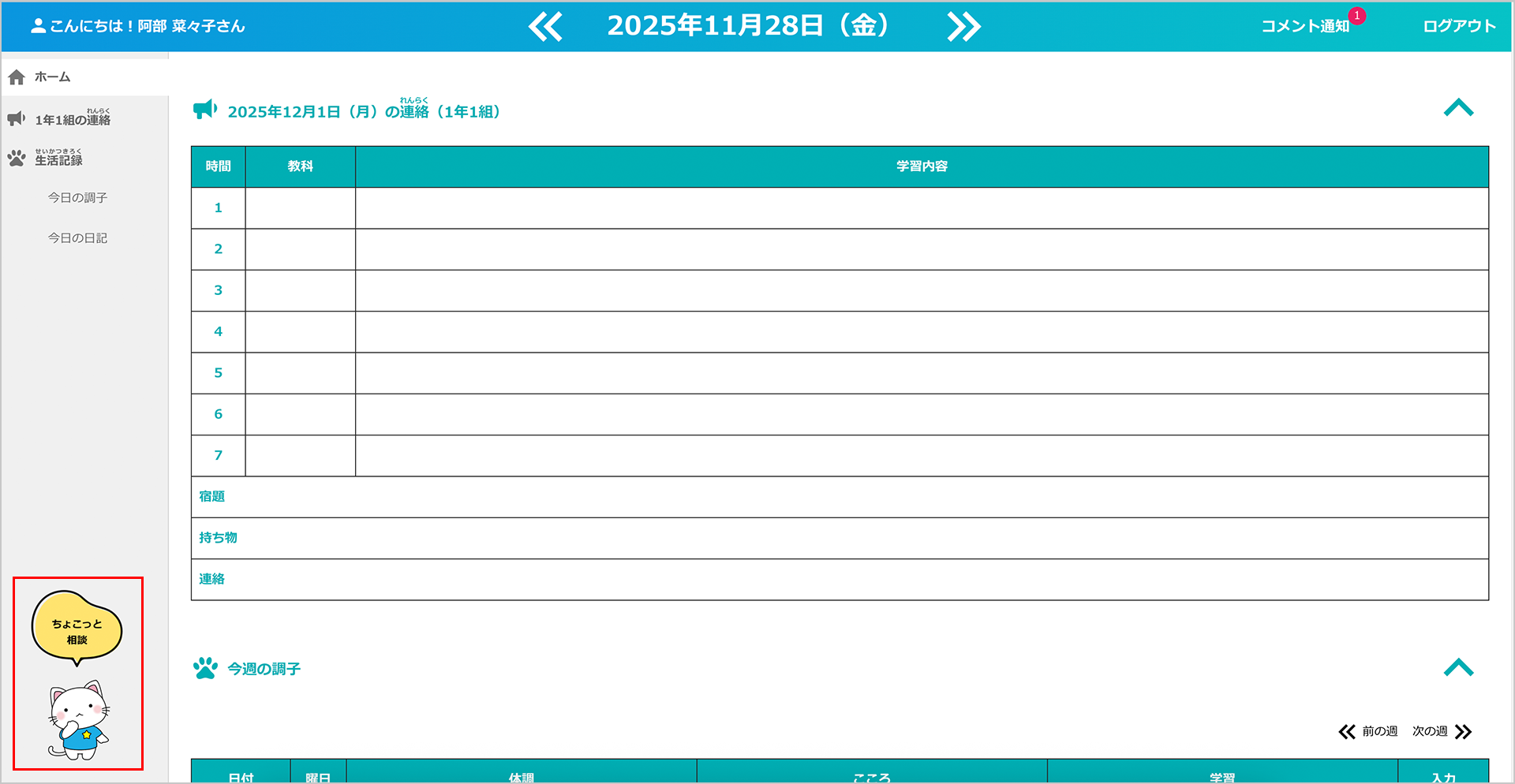 ※ 学校管理者画面の「各種設定」から、「相談」ボタンの表示/非表示を切り替えることができます。