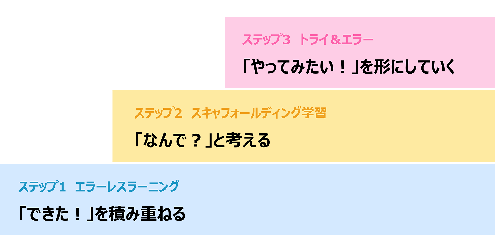 虹色ボックスは、3つの段階で学びを構成しています。