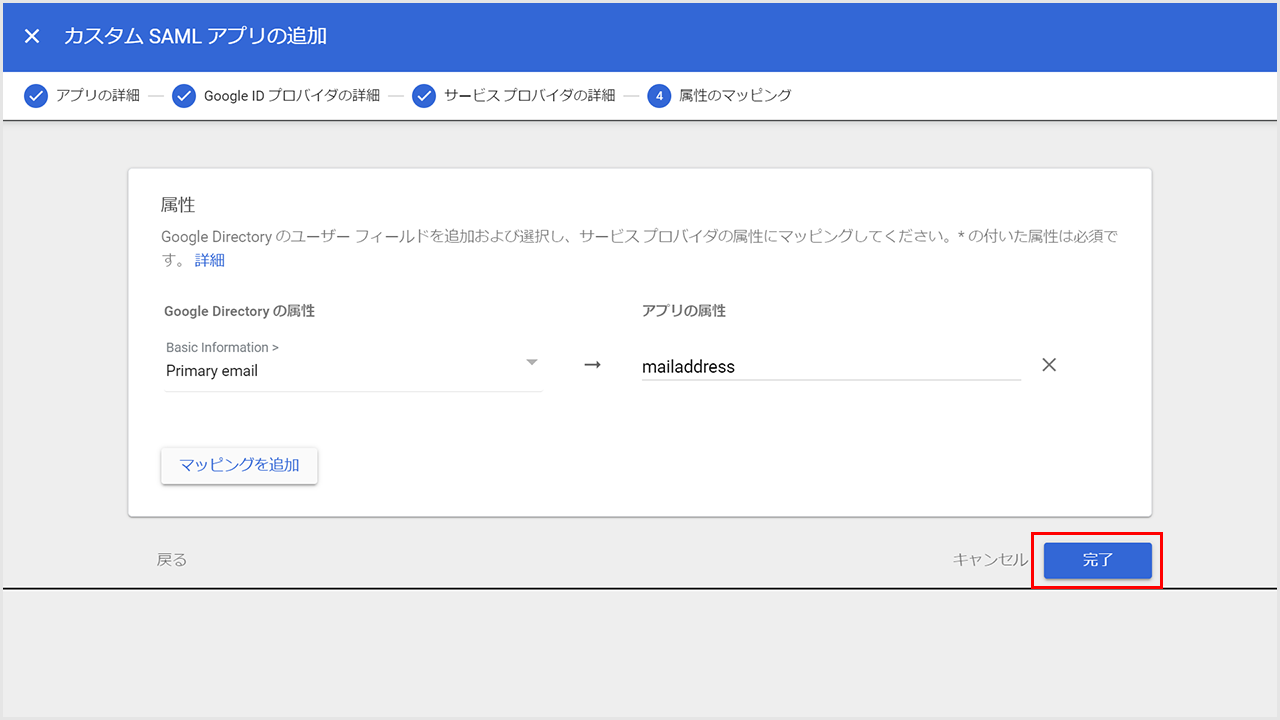 5.属性のマッピング設定