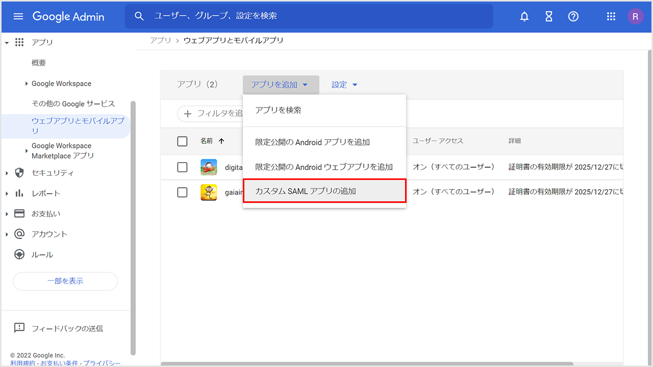 1.カスタムSAMLアプリの追加