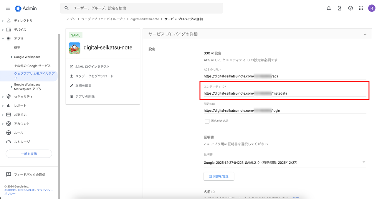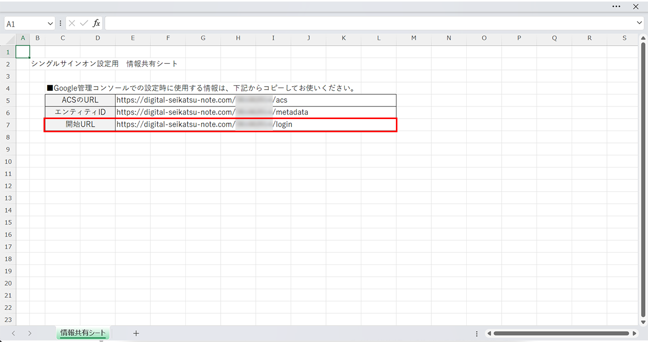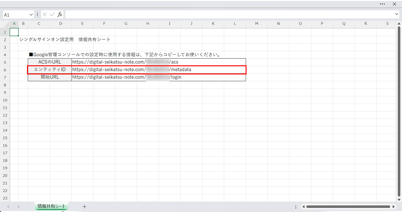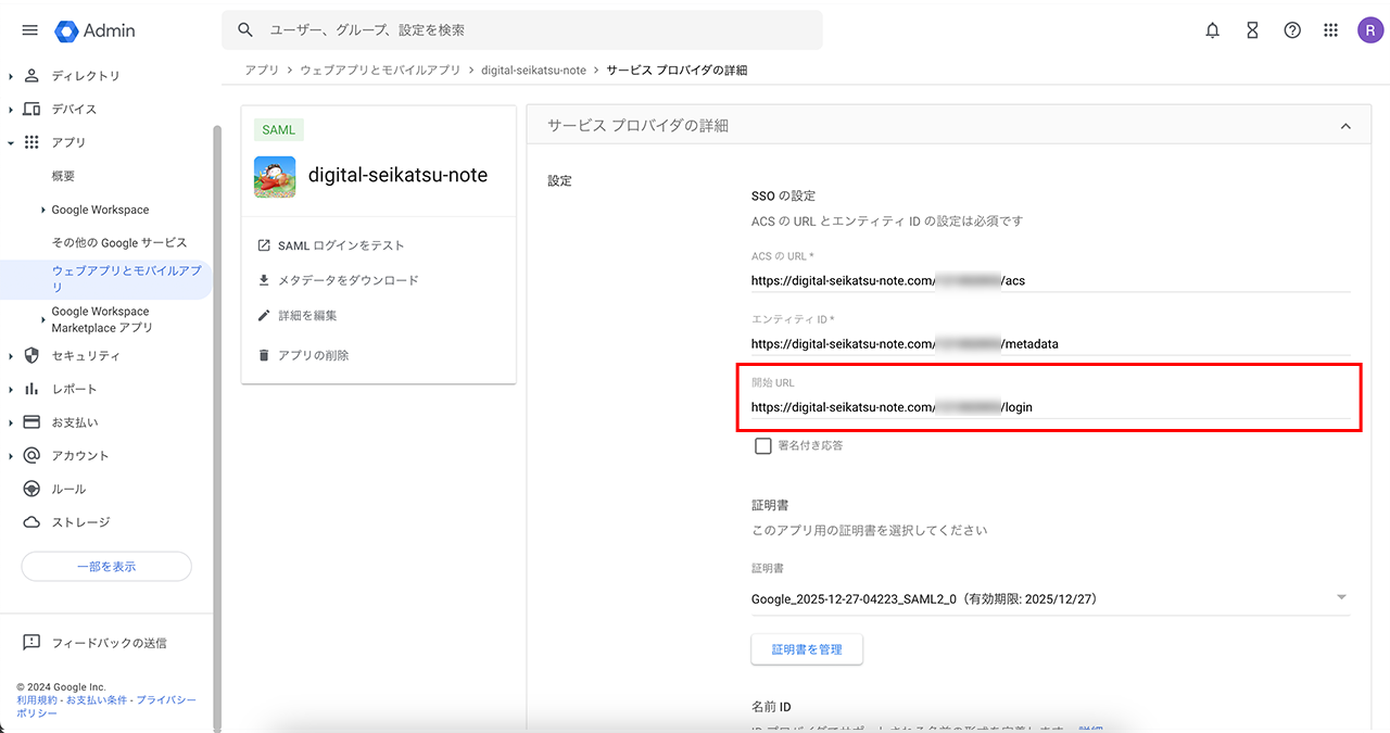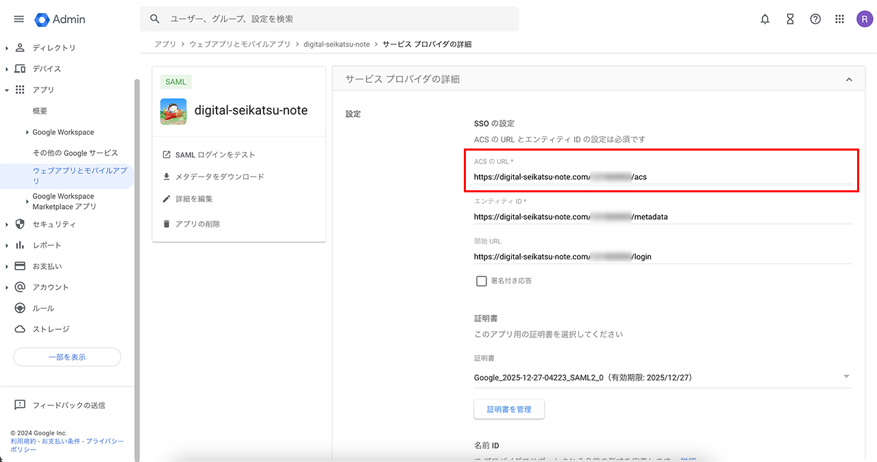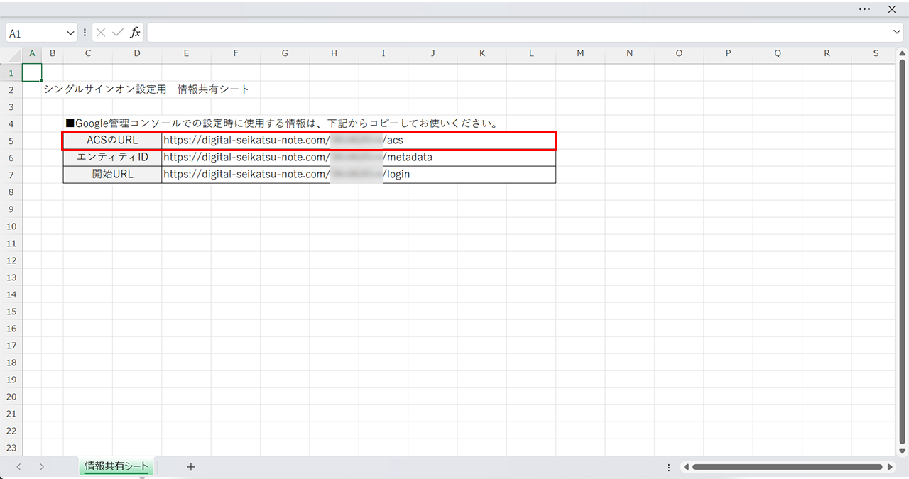 ③「ACSのURL」に②でコピーした「ACSのURL」を貼り付けます。